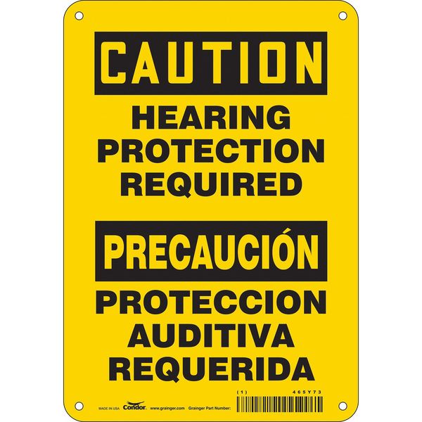 SKU G5578297Categories SafetyDescription Safety Sign, Horizontal Rectangle, Number of Printed Sides 1, English, Spanish, Sign Format Traditional OSHA, Sign Legend Hearing Protection Required/Proteccion Auditiva Requerida, Sign Legend Background Color Yellow, Sign Legend Style Text Safety Sign, 10 in Height, 7 in Width, Aluminum, Horizontal Rectangle, English, Spanish, 465Y73