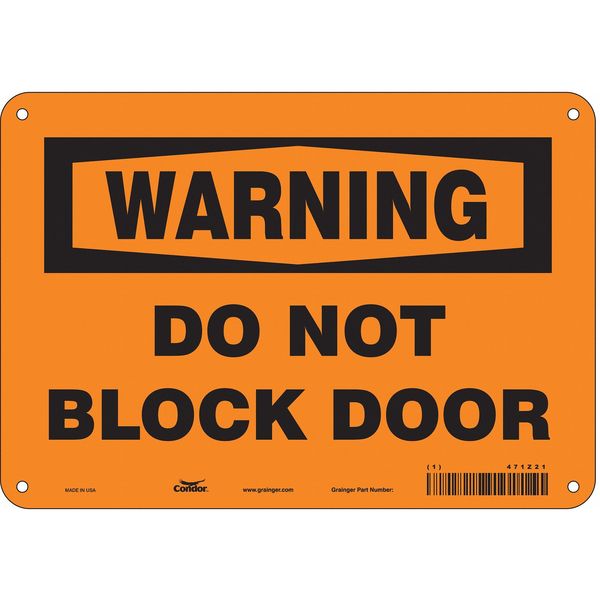 SKU G5812550Categories SafetyDescription Safety Sign, Vertical Rectangle, Number of Printed Sides 1, English, Sign Format Traditional OSHA, Sign Legend Do Not Block Door, Sign Legend Background Color Orange, Sign Legend Style Text Safety Sign, 7 in Height, 10 in Width, Aluminum, Vertical Rectangle, English, 471Z21