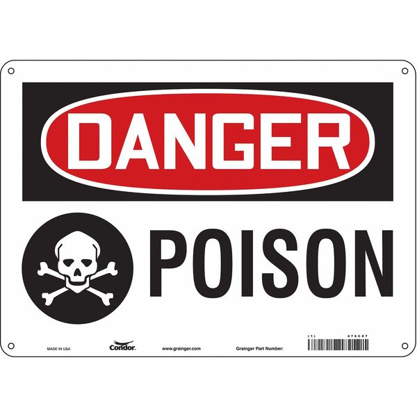 SKU G5871393Categories SafetyDescription Safety Sign, Horizontal Rectangle, Number of Printed Sides 1, English, Sign Format Traditional OSHA, Sign Legend Poison, Sign Legend Background Color White, Sign Legend Style Symbol and Text Safety Sign, 10 in Height, 14 in Width, Aluminum, Horizontal Rectangle, English, 476C87