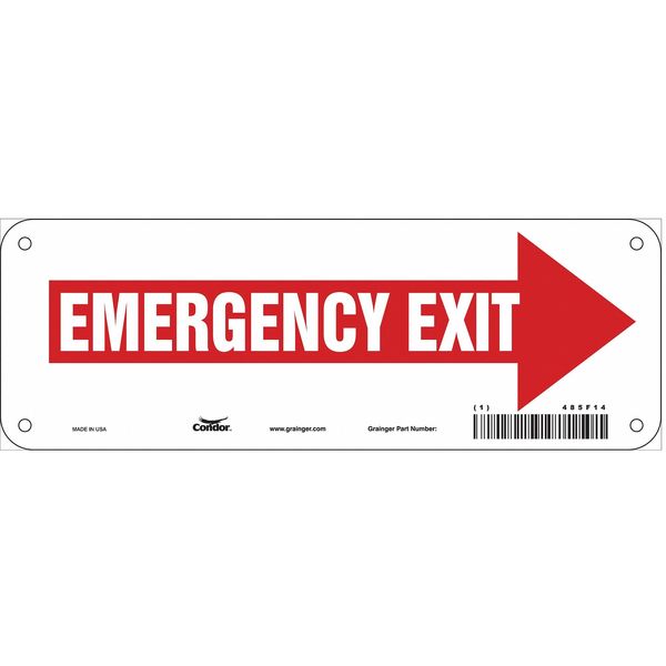 SKU G6282838Categories SafetyDescription Safety Sign, Vertical Rectangle, Number of Printed Sides 1, English, Sign Format Other Format, Sign Legend Emergency Exit, Sign Legend Background Color Red, Sign Legend Style Symbol and Text Safety Sign, 3.5in x 10in, Polyethylene