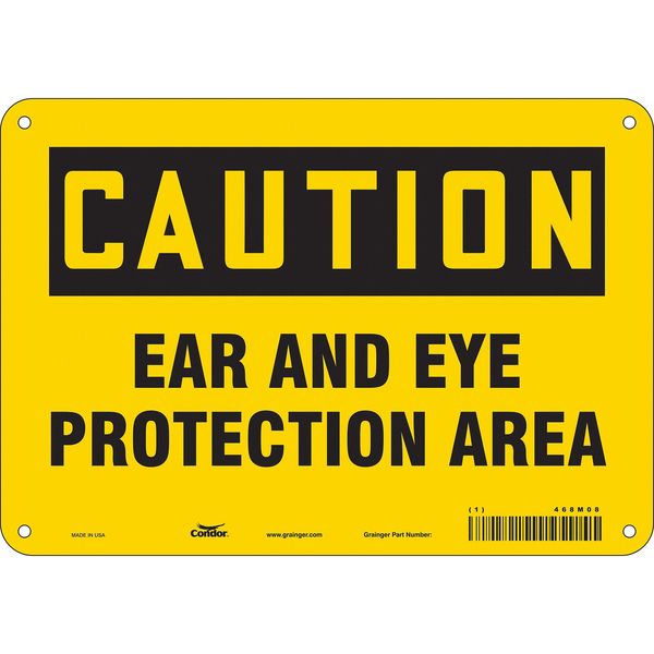 SKU G5626308Categories SafetyDescription Safety Sign, Vertical Rectangle, Number of Printed Sides 1, English, Sign Format Traditional OSHA, Sign Legend Ear And Eye Protection Area, Sign Legend Background Color Yellow, Sign Legend Style Text Safety Sign, 7 in Height, 10 in Width, Aluminum, Vertical Rectangle, English, 468M08