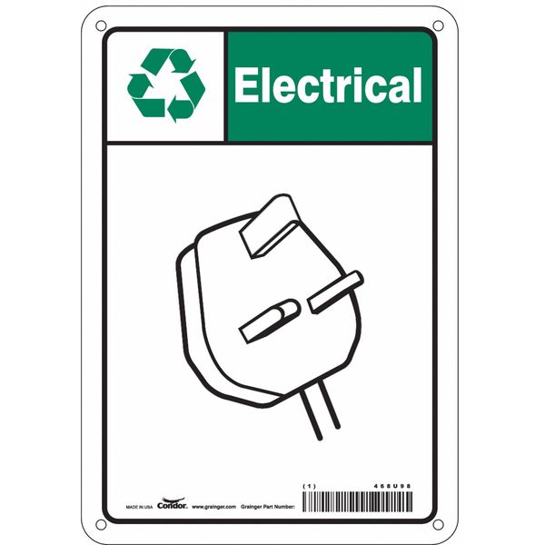 SKU G5162932Categories SafetyDescription Safety Sign, Horizontal Rectangle, Number of Printed Sides 1, English, Sign Format Other Format, Sign Legend Electrical, Sign Legend Background Color Green, White, Sign Legend Style Symbol and Text Safety Sign, 10 in Height, 7 in Width, Aluminum, Horizontal Rectangle, English, 468U98