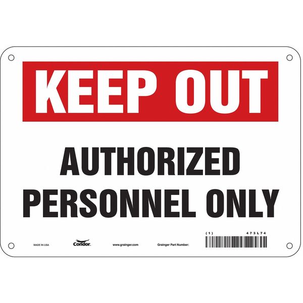 SKU G5651149Categories SafetyDescription Safety Sign, Vertical Rectangle, Number of Printed Sides 1, English, Sign Format Other Format, Sign Legend Authorized Personnel Only, Sign Legend Background Color Red, White, Sign Legend Style Text Safety Sign, 7 in Height, 10 in Width, Aluminum, Vertical Rectangle, English, 473L74