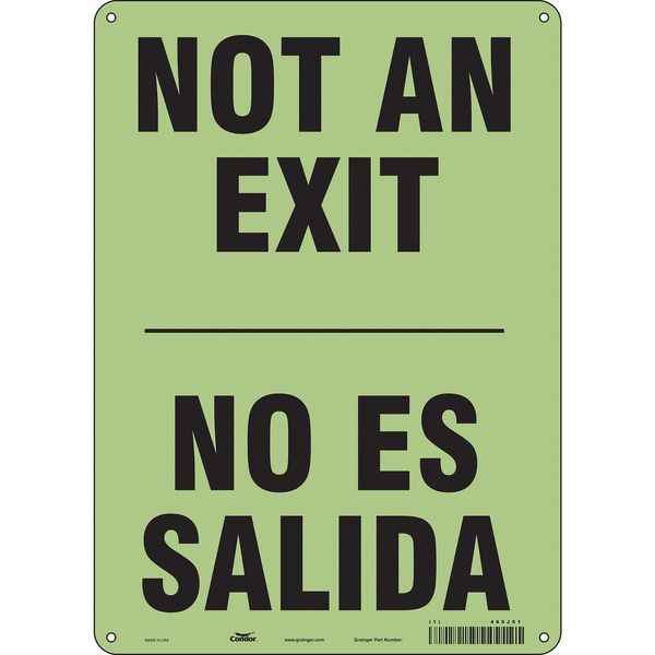 SKU G5840532Categories SafetyDescription Safety Sign, Vertical Rectangle, Number of Printed Sides 1, English, Spanish, Sign Format Other Format, Sign Legend Not An Exit/No Es Salida, Sign Legend Background Color White, Sign Legend Style Text Not An Exit Sign, English, Spanish, 10" W, 14" H, Plastic, White