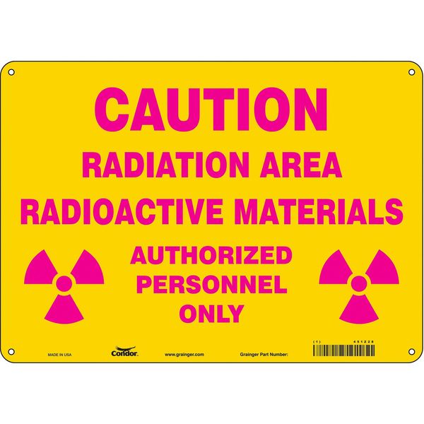 SKU G5214951Categories SafetyDescription Radiation Safety Sign, Horizontal Rectangle, Number of Printed Sides 1, English, Sign Format Other Format, Sign Legend Caution Radiation Area Radioactive Materials Authorized Personnel Only, Sign Legend Background Color Yellow, Sign Legend Style Symbol and Text Radiation Safety Sign, 10 in H, 14 in W, Aluminum, Horizontal Rectangle, 451Z28