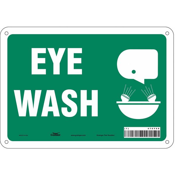 SKU G5859968Categories SafetyDescription Safety Sign, Vertical Rectangle, Number of Printed Sides 1, English, Sign Format Other Format, Sign Legend Eye Wash, Sign Legend Background Color Green, Sign Legend Style Symbol and Text Safety Sign, 7 in Height, 10 in Width, Aluminum, Vertical Rectangle, English, 470Y68