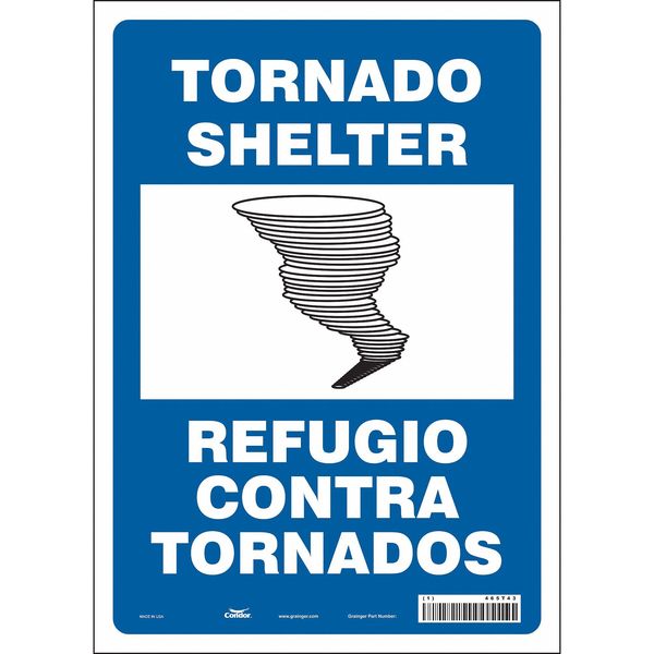 SKU G5130638Categories SafetyDescription Safety Sign, Vertical Rectangle, Number of Printed Sides 1, English, Sign Legend Tornado Shelter / Refugio Contra Tornados, Sign Legend Background Color Blue, Sign Legend Style Symbol and Text Safety Sign, 14 in Height, 10 in Width, Vinyl, Vertical Rectangle, English, 465T43