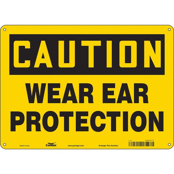 SKU G5567727Categories SafetyDescription Safety Sign, Horizontal Rectangle, Number of Printed Sides 1, English, Sign Format Traditional OSHA, Sign Legend Wear Ear Protection, Sign Legend Background Color Yellow, Sign Legend Style Text Safety Sign, 10 in Height, 14 in Width, Aluminum, Horizontal Rectangle, English, 466A73