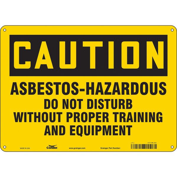SKU G5896779Categories SafetyDescription Safety Sign, Horizontal Rectangle, Number of Printed Sides 1, English, Sign Format Traditional OSHA, Sign Legend Asbestos-Hazardous Do Not Disturb Without Proper Training And Equipment, Sign Legend Background Color Yellow, Sign Legend Style Text Safety Sign, 10 in Height, 14 in Width, Aluminum, Horizontal Rectangle, English, 479K48