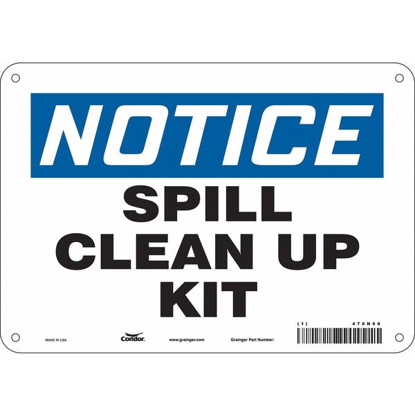 SKU G5243697Categories SafetyDescription Safety Sign, Vertical Rectangle, Number of Printed Sides 1, English, Sign Legend Spill Clean Up Kit, Sign Legend Background Color White, Sign Legend Style Text Safety Sign, 7 in Height, 10 in Width, Aluminum, Vertical Rectangle, English, 470N60