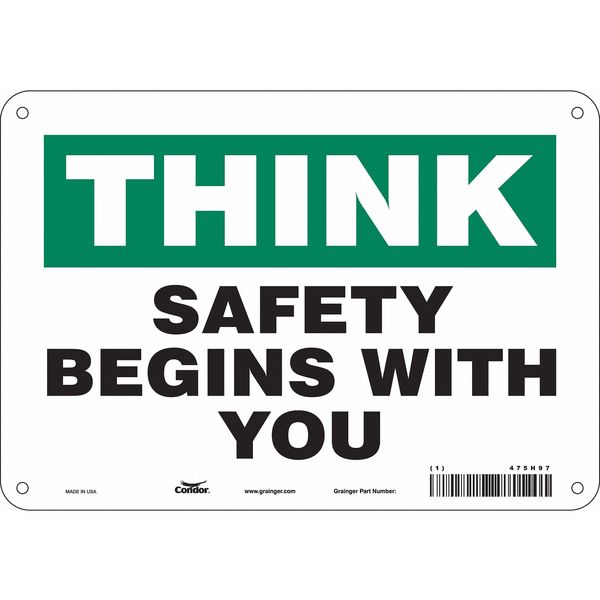 SKU G5579198Categories SafetyDescription Safety Sign, Vertical Rectangle, Number of Printed Sides 1, English, Sign Format Other Format, Sign Legend Safety Begins With You, Sign Legend Background Color Green, White, Sign Legend Style Text Safety Sign, 7 in Height, 10 in Width, Aluminum, Vertical Rectangle, English, 475H97