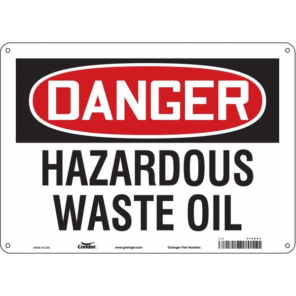 SKU G5840970Categories SafetyDescription Safety Sign, Horizontal Rectangle, Number of Printed Sides 1, English, Sign Format Traditional OSHA, Sign Legend Hazardous Waste Oil, Sign Legend Background Color White, Sign Legend Style Text Safety Sign, 10 in Height, 14 in Width, Aluminum, Horizontal Rectangle, English, 476A83
