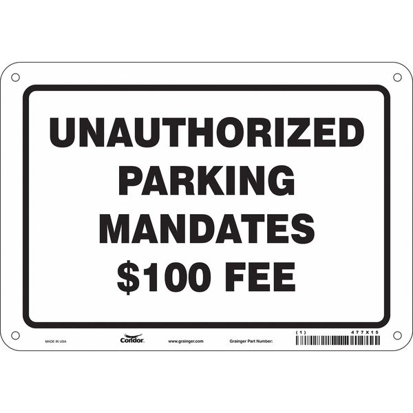 SKU G5788671Categories SafetyDescription Unauthorized Parked Vehicles Fine Parking Sign, Height 7 in, Width 10 in, Sign Material Aluminum, Sign Mounting Style Mounting Holes, Printed Language English, Sign Shape Horizontal Rectangle Traffic Sign, 10" W, 7" H, 0.032" Thickness, 477X15