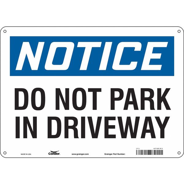 SKU G5782049Categories SafetyDescription Safety Sign, Horizontal Rectangle, Number of Printed Sides 1, English, Sign Format Traditional OSHA, Sign Legend Do Not Park In Driveway, Sign Legend Background Color White, Sign Legend Style Text Safety Sign, 10 inx14 in, Aluminum, 478C53