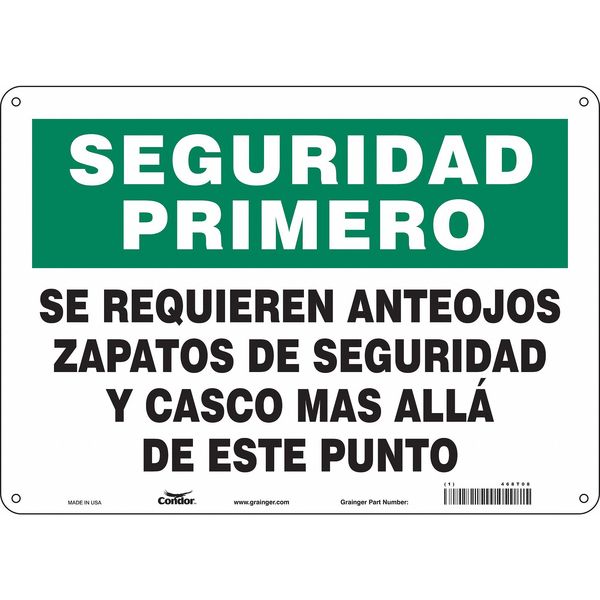 Safety Sign, 14" Wx10" H, 0.032" ThicknessSKU G5559053Categories SafetyDescription Safety Sign, Horizontal Rectangle, Number of Printed Sides 1, Spanish, Sign Format Traditional OSHA, Sign Legend Se Requiren Anteojos Zapatos De Seguridad Y Cascos Mas Alla De Este Punto, Sign Legend Background Color White, Sign Legend Style TextgraingerSKU: 468T08, mscSKU: , zoro_no: G5559053, mongo_id: 65bbe7b93aaddbd5a90b0608