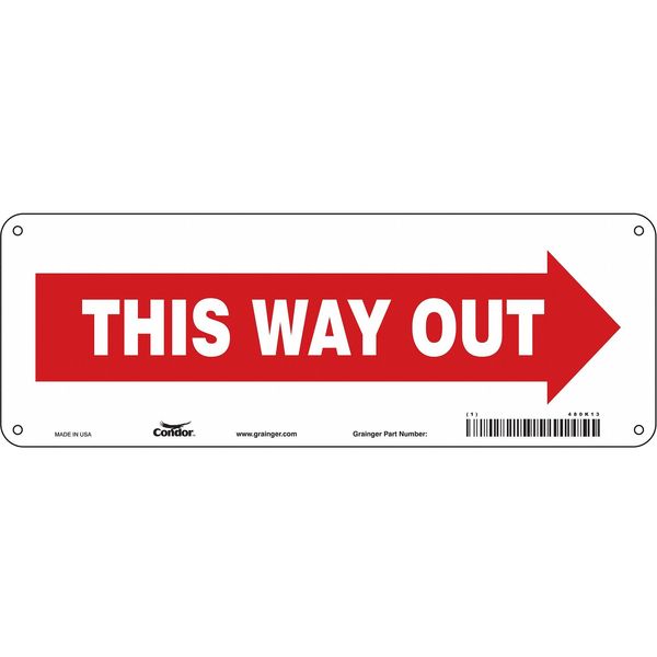 Safety Sign, 5 in H, 14 in W, Polyethylene, Vertical Rectangle, English, 480K13SKU G5892490Categories SafetyDescription Safety Sign, Vertical Rectangle, Number of Printed Sides 1, English, Sign Legend This Way Out (Arrow), Sign Legend Background Color White, Sign Legend Style Symbol and TextgraingerSKU: 480K13, mscSKU: , zoro_no: G5892490, mongo_id: 65bbe7b93aaddbd5a90b0581