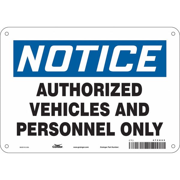 SKU G5187730Categories SafetyDescription Safety Sign, Vertical Rectangle, Number of Printed Sides 1, English, Sign Format Traditional OSHA, Sign Legend Authorized Vehicles And Personnel Only, Sign Legend Background Color White, Sign Legend Style TextgraingerSKU: 472U65, mscSKU: , zoro_no: G5187730, mongo_id: 65bbe7b93aaddbd5a90b04b9