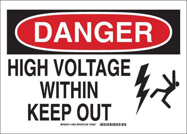 Danger Sign, 10 in Height, 14 in Width, Polyester, Rectangle, EnglishSKU G7410203Categories SafetyDescription Danger Sign, Sign Subject Matter Electrical Hazard, Height 10 in, Width 14 in, Sign Material Polyester, Sign Mounting Style Adhesive Surface, Header Danger, Legend High Voltage Within Keep Out, Printed Language English, Sign Shape Rectangle$29.99 / eachWeb price -