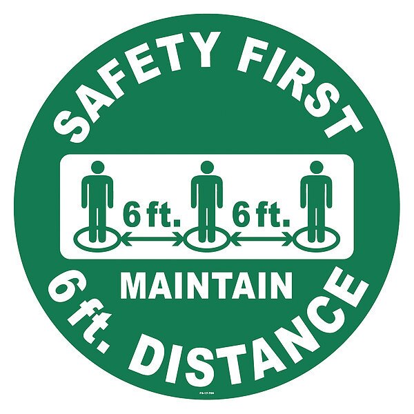 Floor Sign, 17 in H, 17 in W, Vinyl, English, FS-17-706SKU G0216398Categories SafetyDescription Printed Language English, Sign Header No Header, Sign Legend Safety First Maintain 6 Ft. Distance$8.09 / eachWeb price -