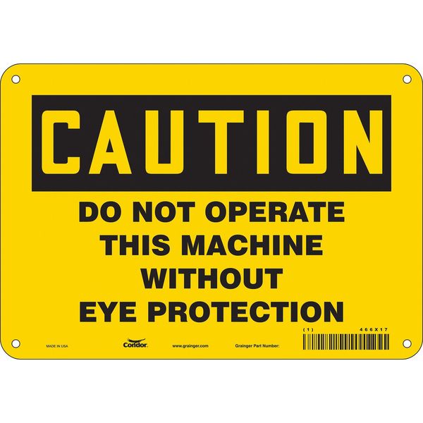 Safety Sign, 7 in Height, 10 in Width, Aluminum, Vertical Rectangle, English, 466X17SKU G5268002Categories SafetyDescription Safety Sign, Vertical Rectangle, Number of Printed Sides 1, English, Sign Format Traditional OSHA, Sign Legend Do Not Operate This Machine Without Eye Protection, Sign Legend Background Color Yellow, Sign Legend Style TextgraingerSKU: 466X17, mscSKU: , zoro_no: G5268002, mongo_id: 65bbe78f9a749db822742434