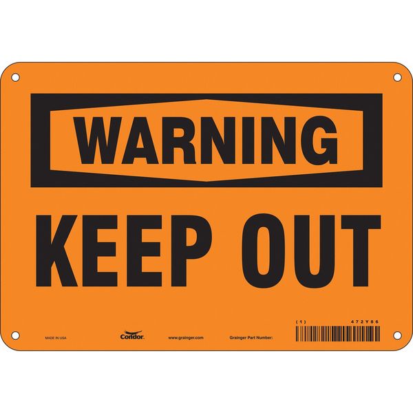 Safety Sign, 7 in Height, 10 in Width, Aluminum, Vertical Rectangle, English, 472Y86SKU G5292627Categories SafetyDescription Safety Sign, Vertical Rectangle, Number of Printed Sides 1, English, Sign Format Traditional OSHA, Sign Legend Keep Out, Sign Legend Background Color Orange, Sign Legend Style TextgraingerSKU: 472Y86, mscSKU: , zoro_no: G5292627, mongo_id: 65bbe78f9a749db822742608