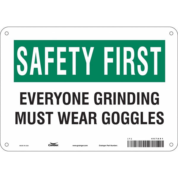 Safety Sign, 7 in Height, 10 in Width, Aluminum, Vertical Rectangle, English, 467A91SKU G5844312Categories SafetyDescription Safety Sign, Vertical Rectangle, Number of Printed Sides 1, English, Sign Format Traditional OSHA, Sign Legend Everyone Grinding Must Wear Goggles, Sign Legend Background Color White, Sign Legend Style TextgraingerSKU: 467A91, mscSKU: , zoro_no: G5844312, mongo_id: 65bbe78f9a749db82274249e