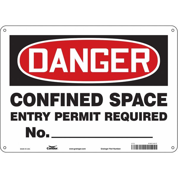 Safety Sign, 10 in Height, 14 in Width, Aluminum, Horizontal Rectangle, English, 465J67SKU G5077307Categories SafetyDescription Safety Sign, Horizontal Rectangle, Number of Printed Sides 1, English, Sign Format Traditional OSHA, Sign Legend Confined Space Entry Permit Required No. _____, Sign Legend Background Color White, Sign Legend Style TextgraingerSKU: 465J67, mscSKU: , zoro_no: G5077307, mongo_id: 65bbe78f9a749db822742547