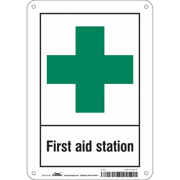 First Aid Sign, 7" W x 10" H, 0.032" Thick, 471T57SKU G5571069Categories SafetyDescription First Aid Sign, Horizontal Rectangle, Number of Printed Sides 1, English, Sign Legend First Aid Station, Sign Legend Background Color White, Sign Legend Style Symbol and TextgraingerSKU: 471T57, mscSKU: , zoro_no: G5571069, mongo_id: 65bbe78f9a749db822742501