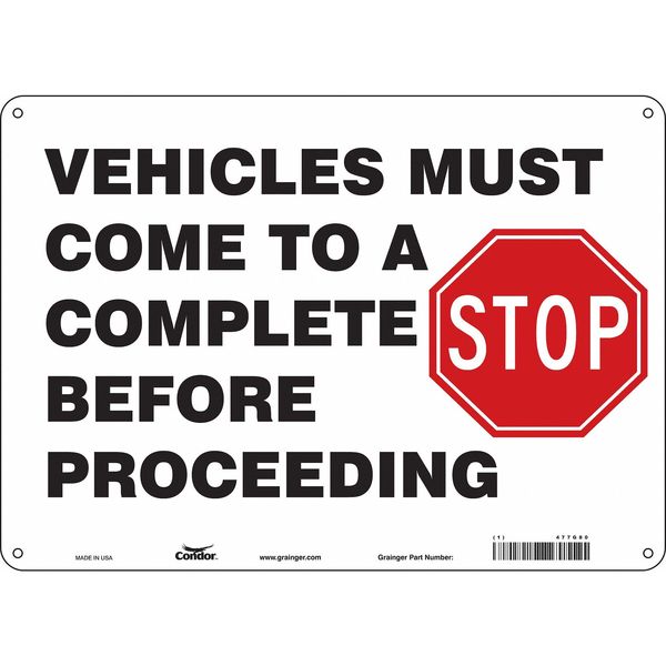Safety Sign, 10 in Height, 14 in Width, Aluminum, Horizontal Rectangle, English, 477G80SKU G5810240Categories SafetyDescription Safety Sign, Horizontal Rectangle, Number of Printed Sides 1, English, Sign Format Other Format, Sign Legend Vehicles Must Come To A Complete Stop Before Proceeding, Sign Legend Background Color White, Sign Legend Style Symbol and TextgraingerSKU: 477G80, mscSKU: , zoro_no: G5810240, mongo_id: 65bbe78f9a749db822742566
