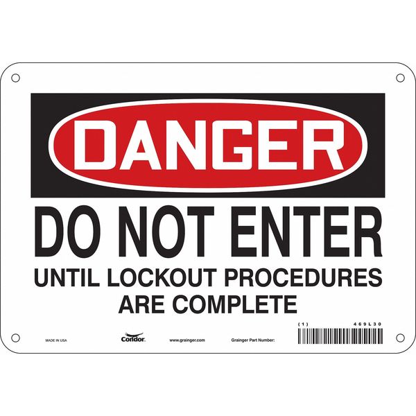 Safety Sign, 7 in Height, 10 in Width, Aluminum, Vertical Rectangle, English, 469L30SKU G5093212Categories SafetyDescription Safety Sign, Vertical Rectangle, Number of Printed Sides 1, English, Sign Format Traditional OSHA, Sign Legend Do Not Enter Until Lockout Procedures Are Complete, Sign Legend Background Color White, Sign Legend Style TextgraingerSKU: 469L30, mscSKU: , zoro_no: G5093212, mongo_id: 65bbe78f9a749db822742418