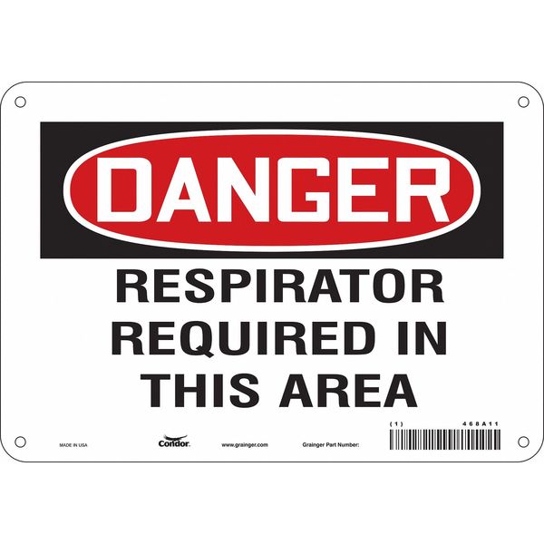 SKU G5561217Categories SafetyDescription Safety Sign, Vertical Rectangle, Number of Printed Sides 1, English, Sign Format Traditional OSHA, Sign Legend Respirator Required In This Area, Sign Legend Background Color White, Sign Legend Style TextgraingerSKU: 468A11, mscSKU: , zoro_no: G5561217, mongo_id: 65bbe78f9a749db82274240f