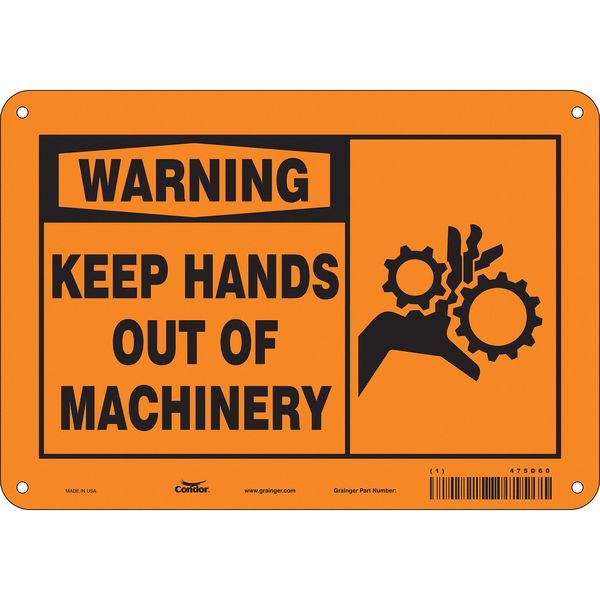 Safety Sign, 7 in Height, 10 in Width, Aluminum, Vertical Rectangle, English, 475D60SKU G5835641Categories SafetyDescription Safety Sign, Vertical Rectangle, Number of Printed Sides 1, English, Sign Format Traditional OSHA, Sign Legend Keep Hands Out Of Machinery, Sign Legend Background Color Orange, Sign Legend Style Symbol and TextgraingerSKU: 475D60, mscSKU: , zoro_no: G5835641, mongo_id: 65bbe7649a749db8227341ab