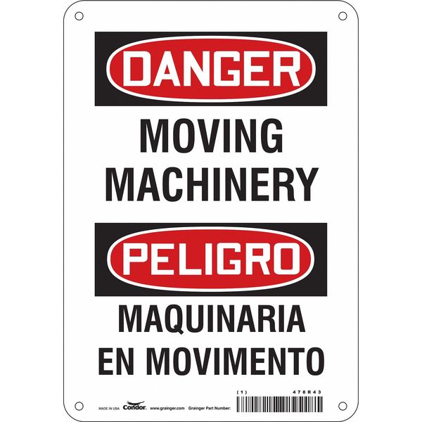 SKU G5769187Categories SafetyDescription Safety Sign, Horizontal Rectangle, Number of Printed Sides 1, English, Spanish, Sign Format Traditional OSHA, Sign Legend Moving Machinery/Maquinaria En Movimiento, Sign Legend Background Color White, Sign Legend Style TextgraingerSKU: 478R43, mscSKU: , zoro_no: G5769187, mongo_id: 65bbe7649a749db8227341b7