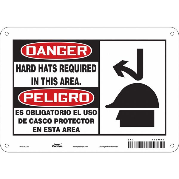 Safety Sign, Personal Protection, 7" H, 466M90SKU G5534221Categories SafetyDescription Safety Sign, Vertical Rectangle, Number of Printed Sides 1, English, Spanish, Sign Format Traditional OSHA, Sign Legend Hard Hats Required In This Area/Es Obligatorio El Uso De Casco Protector En Esta Area, Sign Legend Background Color White, Sign Legend Style Symbol and TextgraingerSKU: 466M90, mscSKU: , zoro_no: G5534221, mongo_id: 65bbe7649a749db8227341b5