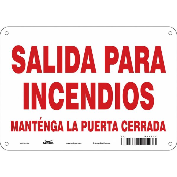 SKU G5162171Categories SafetyDescription Safety Sign Emergency Exit, Vertical Rectangle, Number of Printed Sides 1, Spanish, Sign Format Other Format, Sign Legend Salida Para Incendios Mantenga La Puerta Cerrada, Sign Legend Background Color White, Sign Legend Style TextgraingerSKU: 467P35, mscSKU: , zoro_no: G5162171, mongo_id: 65bbe7649a749db82273417b
