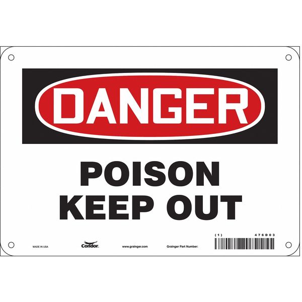 Safety Sign, 7 in Height, 10 in Width, Aluminum, Vertical Rectangle, English, 476D03SKU G5832150Categories SafetyDescription Safety Sign, Vertical Rectangle, Number of Printed Sides 1, English, Sign Format Traditional OSHA, Sign Legend Poison Keep Out, Sign Legend Background Color White, Sign Legend Style TextgraingerSKU: 476D03, mscSKU: , zoro_no: G5832150, mongo_id: 65bbe7649a749db82273418d