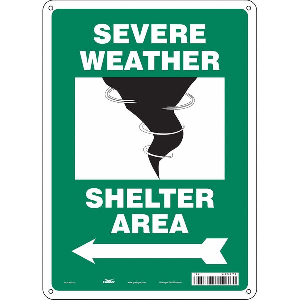 Safety Sign, 10" Wx14" H, 0.032" ThicknessSKU G5078372Categories SafetyDescription Safety Sign, Vertical Rectangle, Number of Printed Sides 1, English, Sign Legend Severe Weather Shelter Area, Sign Legend Background Color Green, Sign Legend Style Symbol and TextgraingerSKU: 465R76, mscSKU: , zoro_no: G5078372, mongo_id: 65bbe7649a749db8227341cb