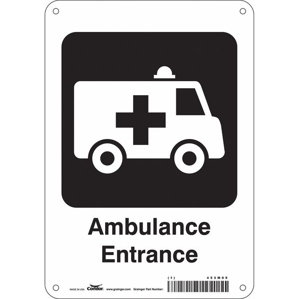 Safety Sign, 10 in Height, 7 in Width, Aluminum, Horizontal Rectangle, English, 453M09SKU G5062972Categories SafetyDescription Safety Sign, Horizontal Rectangle, Number of Printed Sides 1, English, Sign Format Other Format, Sign Legend Ambulance Entrance, Sign Legend Background Color Black, White, Sign Legend Style Symbol and TextgraingerSKU: 453M09, mscSKU: , zoro_no: G5062972, mongo_id: 65bbe7649a749db822733f31