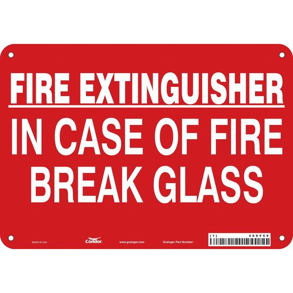 Safety Sign, 10" W, 7" H, 0.032" ThicknessSKU G5627699Categories SafetyDescription Safety Sign, Vertical Rectangle, Number of Printed Sides 1, English, Sign Format Other Format, Sign Legend Fire Extinguisher In Case Of Fire Break Glass, Sign Legend Background Color Red, White, Sign Legend Style TextgraingerSKU: 469Y59, mscSKU: , zoro_no: G5627699, mongo_id: 65bbe7649a749db8227340de