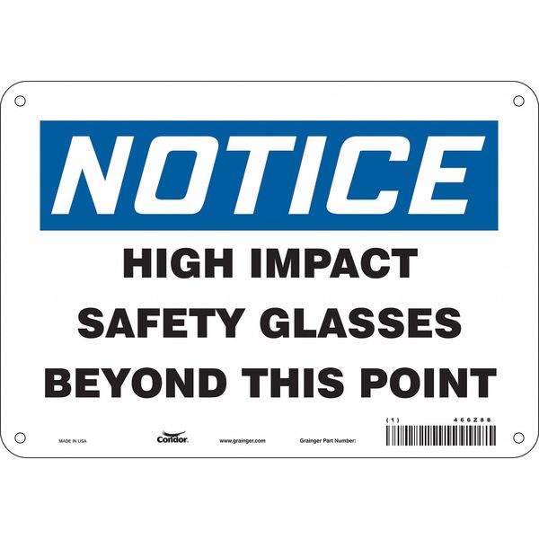 SKU G5902239Categories SafetyDescription Safety Sign, Vertical Rectangle, Number of Printed Sides 1, English, Sign Format Traditional OSHA, Sign Legend High Impact Safety Glasses Beyond This Point, Sign Legend Background Color White, Sign Legend Style TextgraingerSKU: 466Z88, mscSKU: , zoro_no: G5902239, mongo_id: 65bbe7649a749db822733fcf