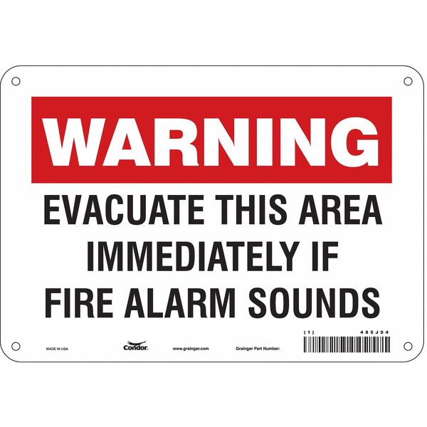 Safety Sign, 10" Wx7" H, 0.032" ThickSKU G6264297Categories SafetyDescription Safety Sign, Vertical Rectangle, Number of Printed Sides 1, English, Sign Format Other Format, Sign Legend Evacuate This Area Immediately If Fire Alarm Sounds, Sign Legend Background Color Red, White, Sign Legend Style TextgraingerSKU: 485J04, mscSKU: , zoro_no: G6264297, mongo_id: 65bbe7649a749db8227340cb