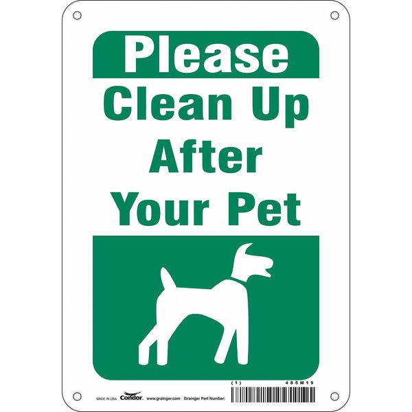 Safety Sign, 10 in Height, 7 in Width, Aluminum, Horizontal Rectangle, English, 485M19SKU G6294613Categories SafetyDescription Safety Sign, Horizontal Rectangle, Number of Printed Sides 1, English, Sign Legend Please Clean Up After Your Pet, Sign Legend Background Color Green, White, Sign Legend Style Symbol and TextgraingerSKU: 485M19, mscSKU: , zoro_no: G6294613, mongo_id: 65bbe7649a749db8227340a1