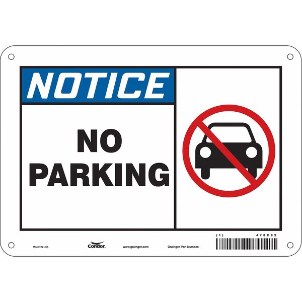 SKU G5788093Categories SafetyDescription No Parking Sign, Height 7 in, Width 10 in, Sign Material Aluminum, Sign Mounting Style Mounting Holes, Printed Language English, Sign Shape Horizontal RectanglegraingerSKU: 478C82, mscSKU: , zoro_no: G5788093, mongo_id: 65bbe7649a749db822734049
