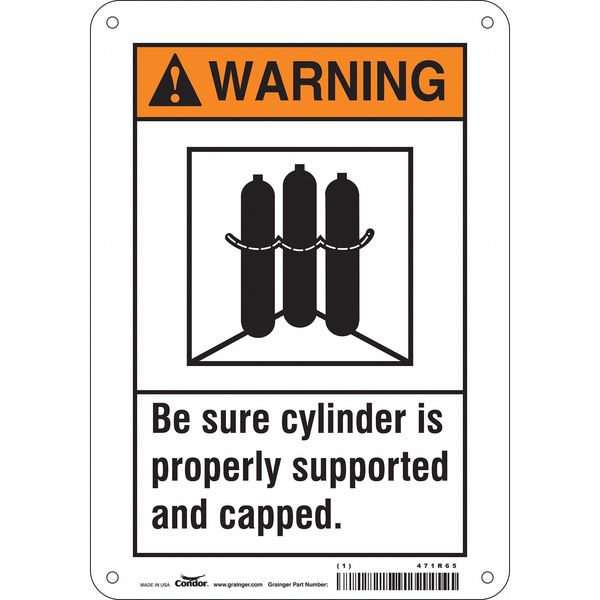 Safety Sign, 10 in Height, 7 in Width, Aluminum, Horizontal Rectangle, English, 471R65SKU G5570411Categories SafetyDescription Safety Sign, Horizontal Rectangle, Number of Printed Sides 1, English, Sign Format ANSI/OSHA Format, Sign Legend Be Sure Cylinder Is Properly Supported And Capped., Sign Legend Background Color White, Sign Legend Style Symbol and TextgraingerSKU: 471R65, mscSKU: , zoro_no: G5570411, mongo_id: 65bbe7649a749db822733f67