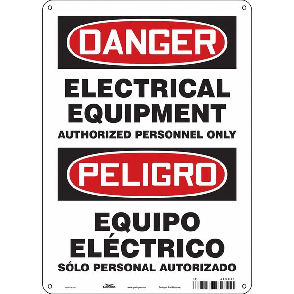 SKU G5783902Categories SafetyDescription Safety Sign, Vertical Rectangle, Number of Printed Sides 1, English, Spanish, Sign Format Traditional OSHA, Sign Legend Electrical Equipment Authorized Personnel Only/Equipo Electrico Solo Personal Autorizado, Sign Legend Background Color White, Sign Legend Style TextgraingerSKU: 475R51, mscSKU: , zoro_no: G5783902, mongo_id: 65bbe7649a749db822733f49