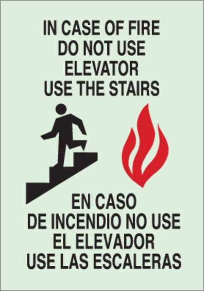 Fire Exit Sign, 14X10", Red/Blk and GrnSKU G302689207Categories SafetyDescription Fire Exit Sign, Sign Subject Matter Exit and Entrance, Height 14 In., Width 10 In., Sign Material Plastic, Sign Mounting Style With Mounting Holes, Header No Header, Legend In Case Of Fire Do Not Use Elevator Use The Stairs, Printed Language English, Spanish, Sign Shape Rectangle$73.24 / eachWeb price -