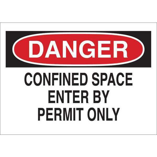 Sign, Danger, 7X10", Red/Bk /Wht, Eng, Legend: Confined Space Enter By Permit Only