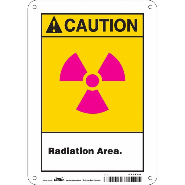 Radiation Safety Sign, 10 in H, 7 in W, Aluminum, Horizontal Rectangle, 451Y90
