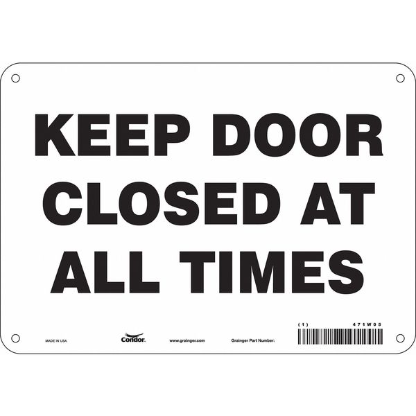 Safety Sign, 7 in Height, 10 in Width, Aluminum, Vertical Rectangle, English, 471W05SKU G5881379Categories SafetyDescription Safety Sign, Vertical Rectangle, Number of Printed Sides 1, English, Sign Legend Keep Door Closed At All Times, Sign Legend Background Color White, Sign Legend Style TextgraingerSKU: 471W05, mscSKU: , zoro_no: G5881379, mongo_id: 65bbe7463aaddbd5a9085475