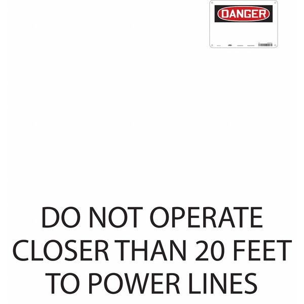 Safety Sign, 7 in Height, 10 in Width, Aluminum, Vertical Rectangle, English, 485Z45SKU G6252412Categories SafetyDescription Safety Sign, Vertical Rectangle, Number of Printed Sides 1, English, Sign Format Traditional OSHA, Sign Legend Do Not Operate Closer Than 20 Feet To Power Lines, Sign Legend Background Color White, Sign Legend Style TextgraingerSKU: 485Z45, mscSKU: , zoro_no: G6252412, mongo_id: 65bbe7463aaddbd5a9085454